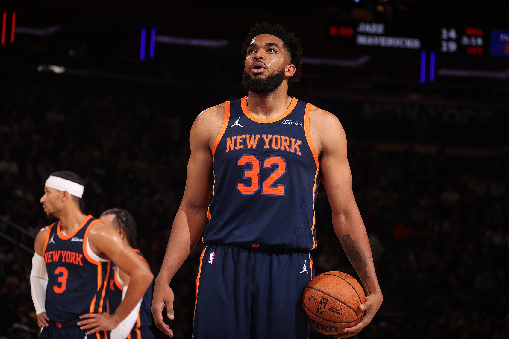 本场比赛,尼克斯球星唐斯出战33分20秒,16投6中(三分5中0)、罚球12中11,取得23分14篮板2助攻2抢断,出现2次子虚,正负值-8。
