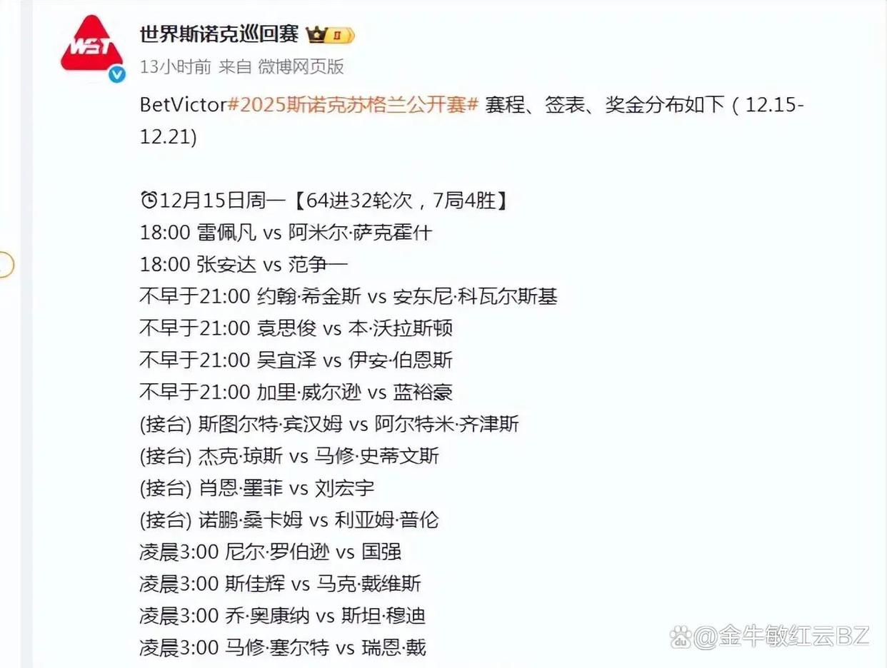 2025年斯诺克苏格兰公开赛立时要运转了,全球的眼神王人聚首在昨年的冠军雷佩凡身上,他本年是1号种子,全球王人思望望他能不可卫冕。最近英锦赛和其他比赛的情况评释,这届比赛竞争愈加各样化,外卡选手博登的发扬也增多了许多看点。