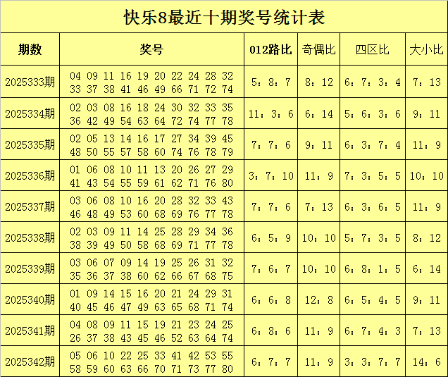 福彩景况8第2025342期开奖讲求:05 06 10 22 25 33 41 42 53 55 58 59 60 63 66 70 71 73 77 80,其中奖号012路比为6:7:7,四区比为3:3:7:7奇偶比为11:9,大小比为14:6。