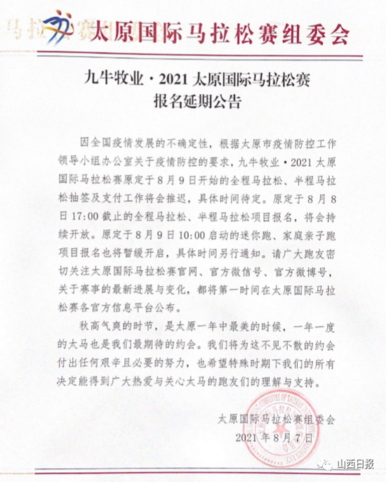 最新音信!2021太原马拉松赛报名脱期