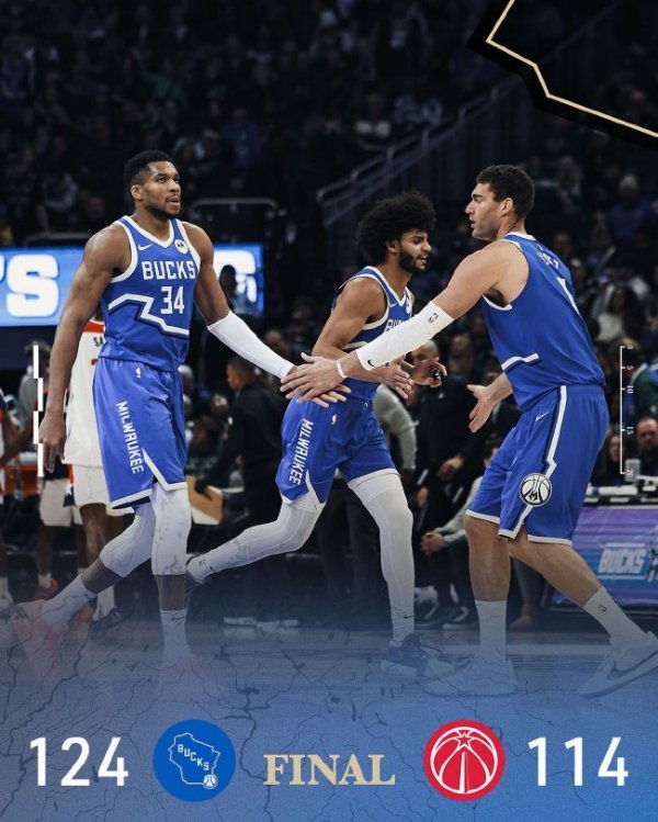 字母42+12+11雄鹿送奇才14连败 独行侠克爵士