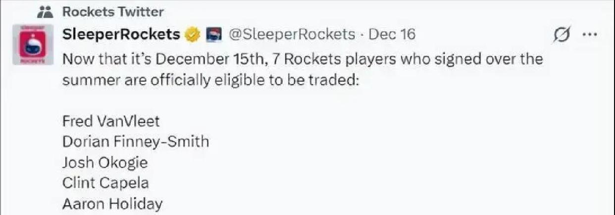 西部竞争浓烈经由昨今不同,每场赢输都能影响名次,火箭从范弗利特受伤后仍是浮滥了不少本该拿下的比赛。其他球队都不坐以待毙,纷繁活跃在交游商场抢东说念主。火箭能否收拢契机补强,径直攸关这赛季庆幸。交游弃世日步步周边,错过期机即是被迫挨打的启动。
