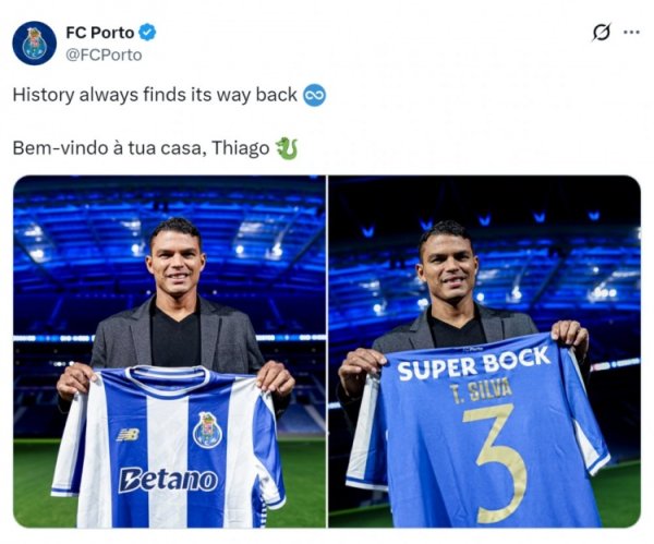 传闻归来!波尔图官方社媒晒蒂亚戈·席尔瓦亮相像片