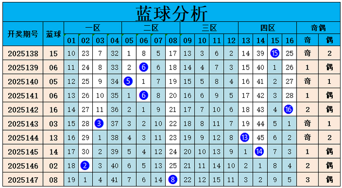 上期总结:双色球第2025147期开出奖号:红球01、03、05、08、22、33;蓝球08