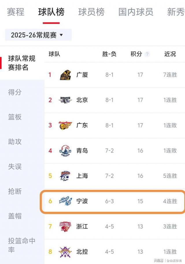不要以为,宁波队 9 轮的敌手太弱。新赛季,他们在主客场双杀老牌劲旅浙江队,这也成了丁伟下课的导火索;在"妖魔主场"山西,宁波队以 8 分惜败;接着,他们又打败本赛季气象颇佳的深圳队;随后客场战辽宁,仅以 2 分惜败,惊出了杨鸣安祥盗汗。之后,宁波队就连战连捷,赢得了队史上首个 4 连胜。