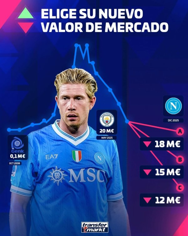 德转预热德布劳内身价更新:最低跌至1200万欧元