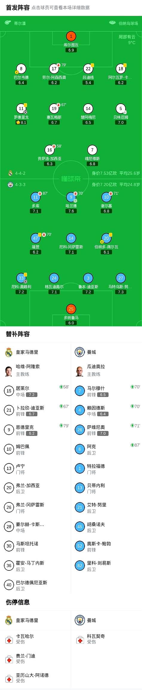 是把皇马留在比赛里的库尔图瓦,已经掀开我方的罗德里戈,巧合稳稳踩点的哈兰德?