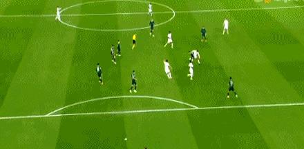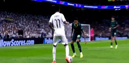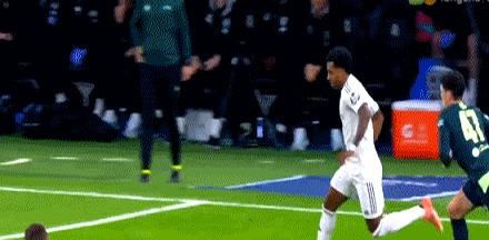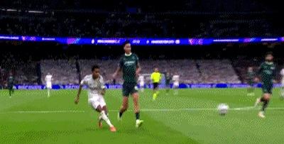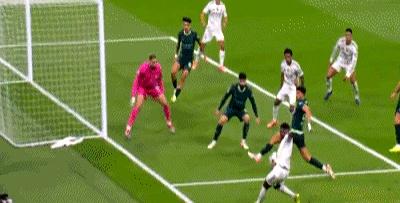 第77分钟,罗德里戈传中找后点,维尼修斯顶偏,球从门柱旁溜过。