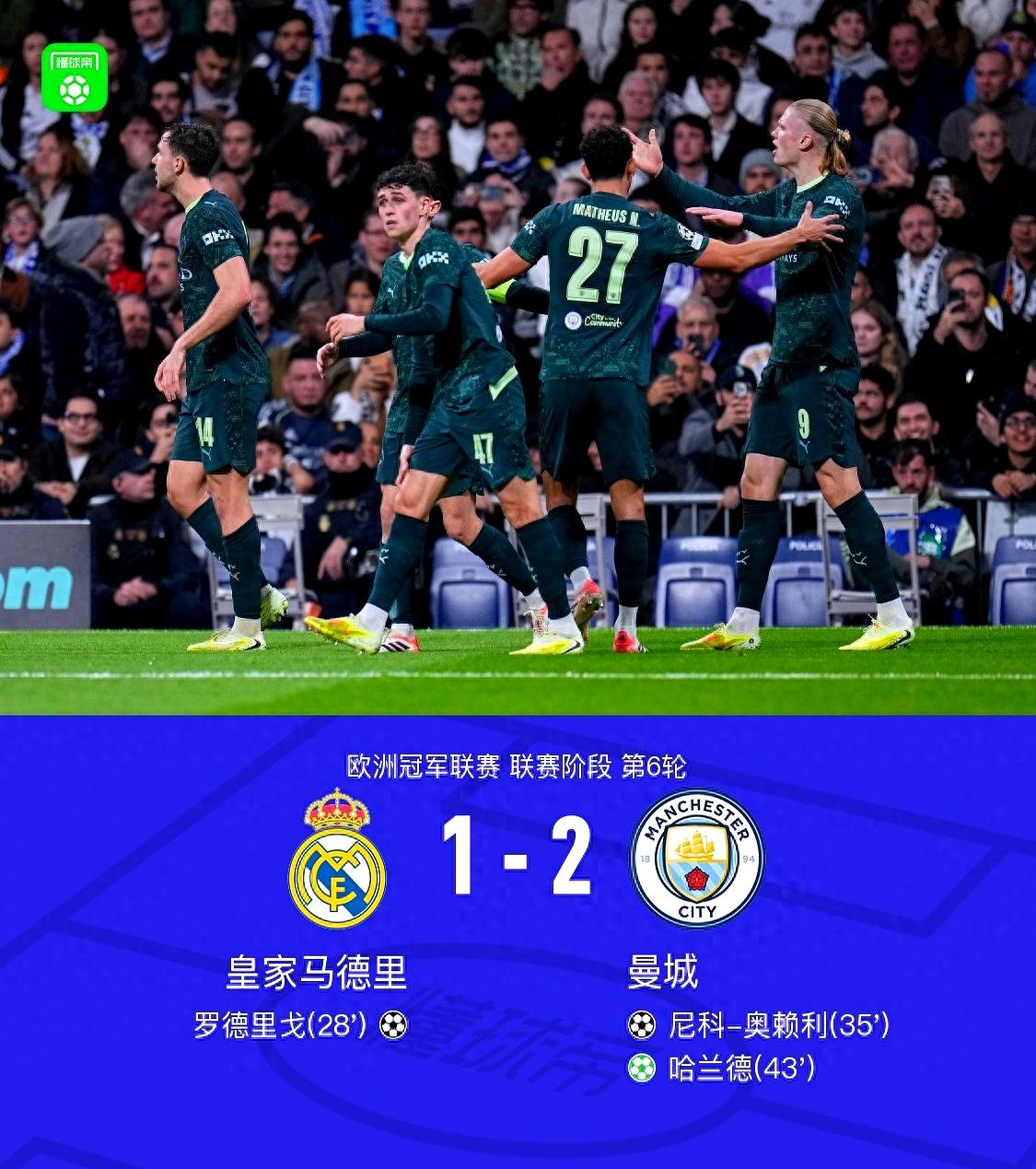 剑南春|曼城2-1皇马,罗德里戈破球荒,奥赖利破门,哈兰德点射