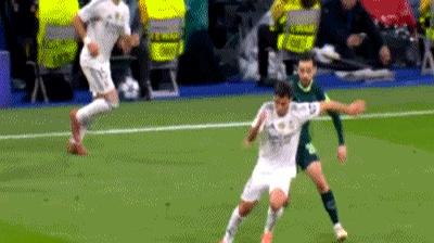 第31分钟,罗德里戈在接球时滑倒,大地像给他开了打趣。